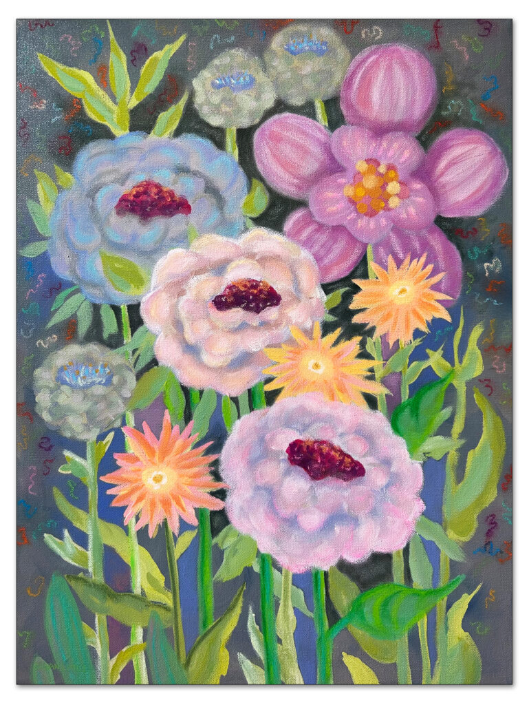 ‘Flower Festival’ $750. Acrylic on gallery wrapped canvas 20″x24″