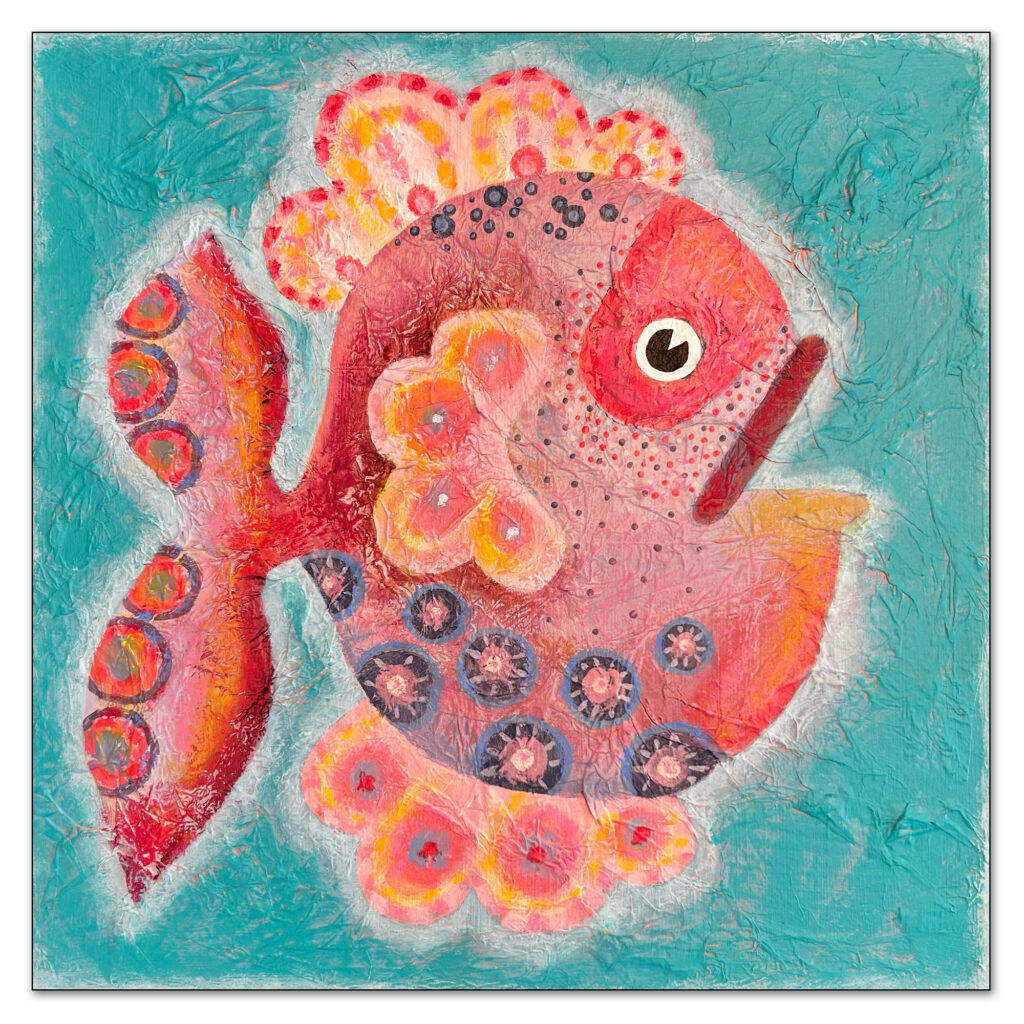 ‘Three’s A Crowd’ $300. Acrylic on gallery depth canvas 12″x12″