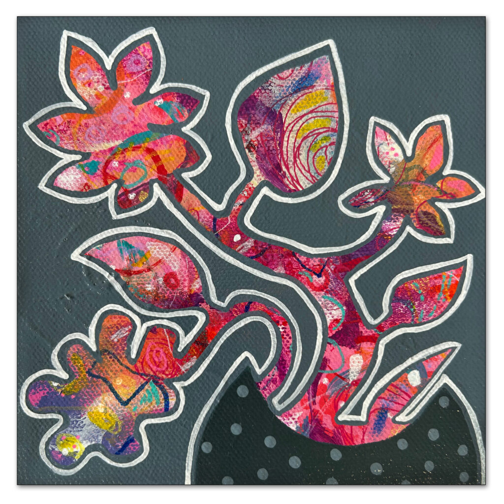 From L-R ‘In My Vase 1, 2, 3 and 4’ $90.00 each Acrylic on gallery depth canvas 6″x 6″