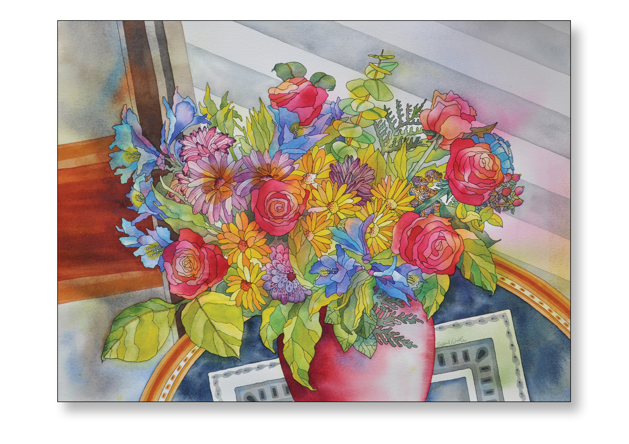 Each one-of-a-kind watercolour painting is painted with professional grade watercolour paints on 100% acid free Arches Coldpressed Watercolour Paper. Custom framed pieces are under glass and are double matted with acid free archival quality mats and backing boards with a solid wood frame.